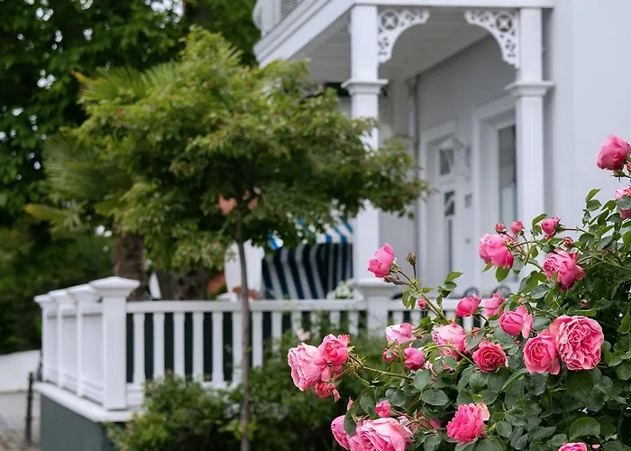 Das traditionelle 8-Zimmer-Apartment Villa Hansa Am Meer liegt ca. 20 Minuten Gehweg vom Strand Hundestrand entfernt und verfügt über einen Südbalkon. Das traditionelle Apartment bietet einen Ausblick aufs Meer und Parkplätze vor Ort.